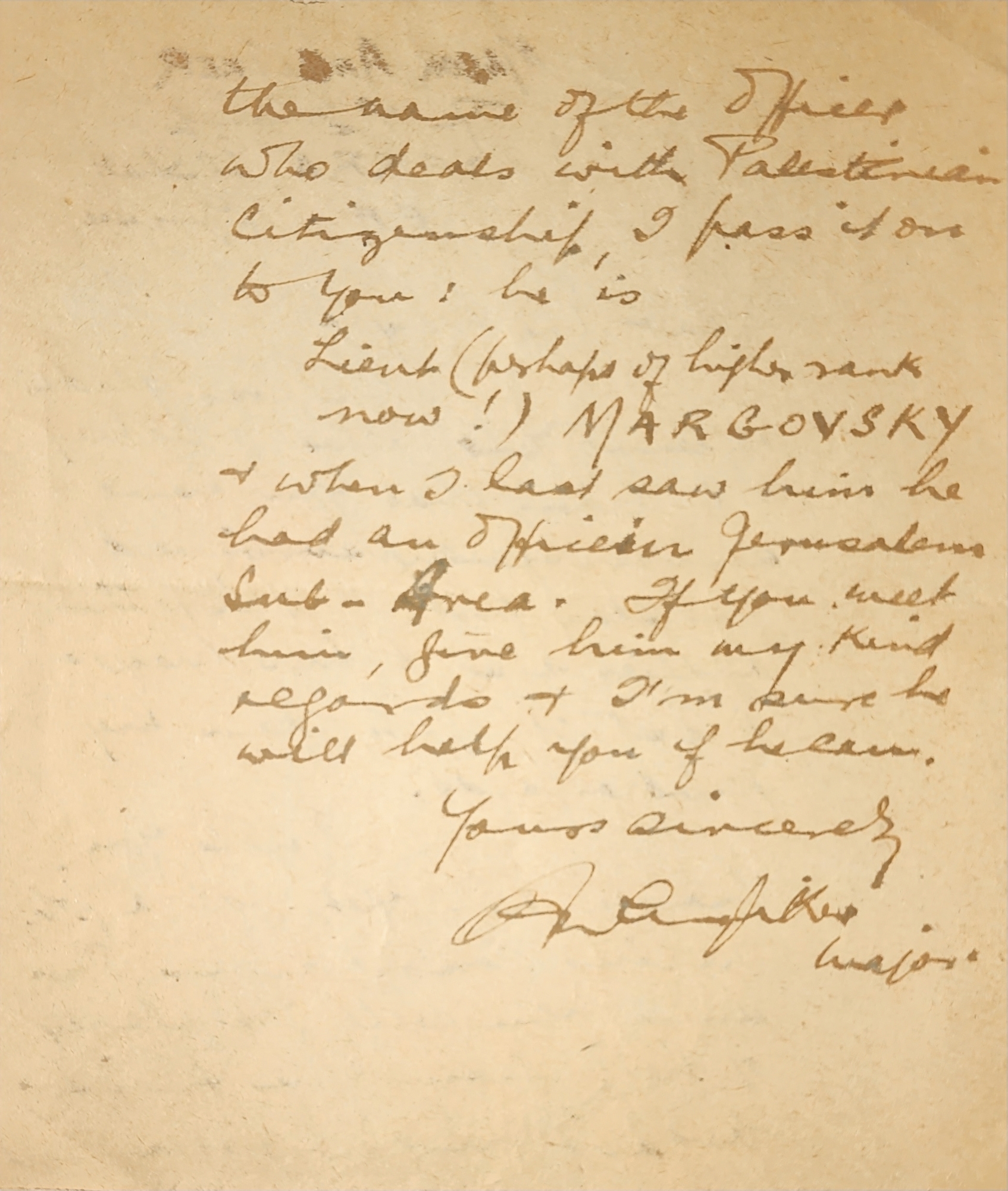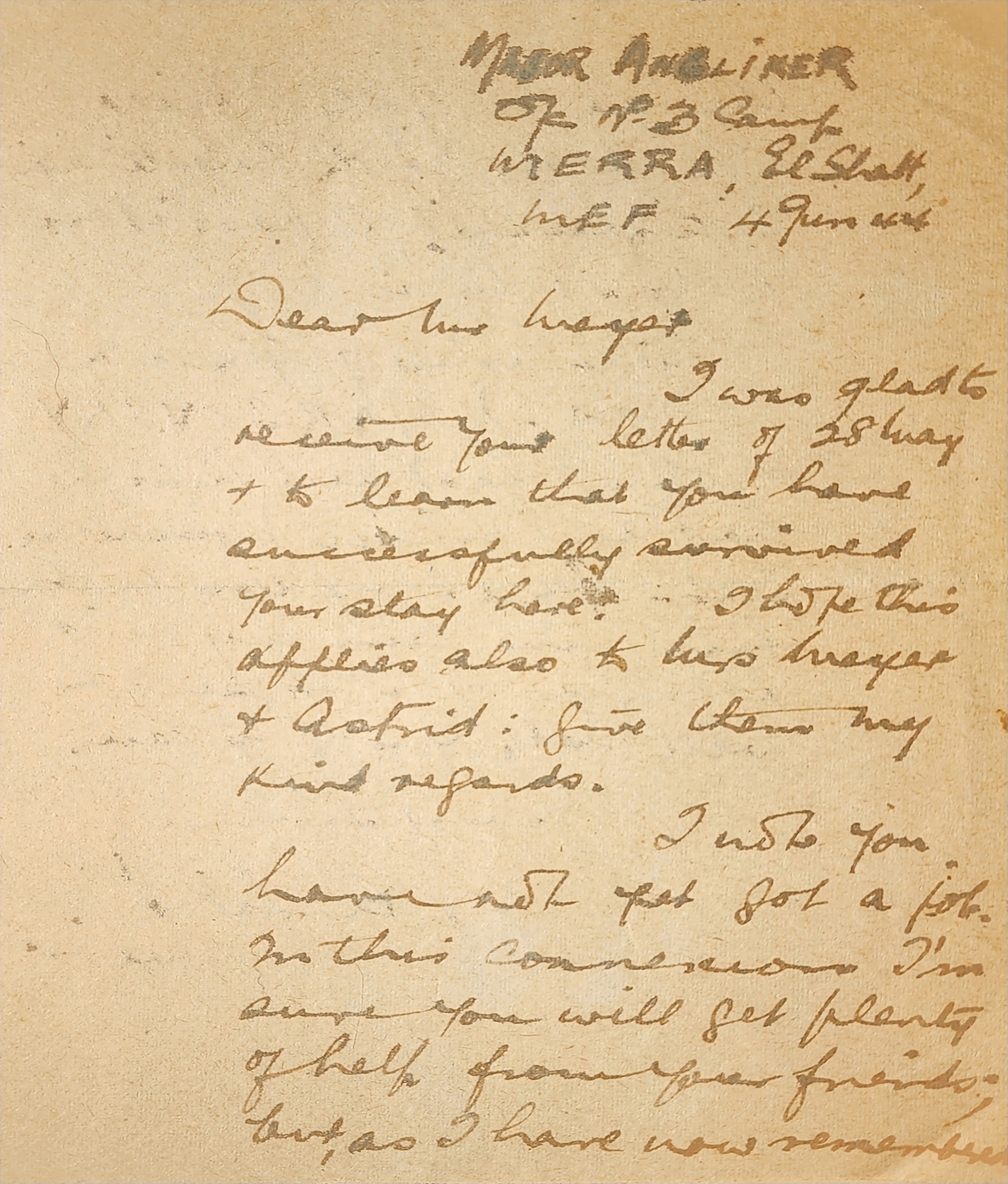 Letter from El Shatt, Egypt refugee camp to Jerusalem.